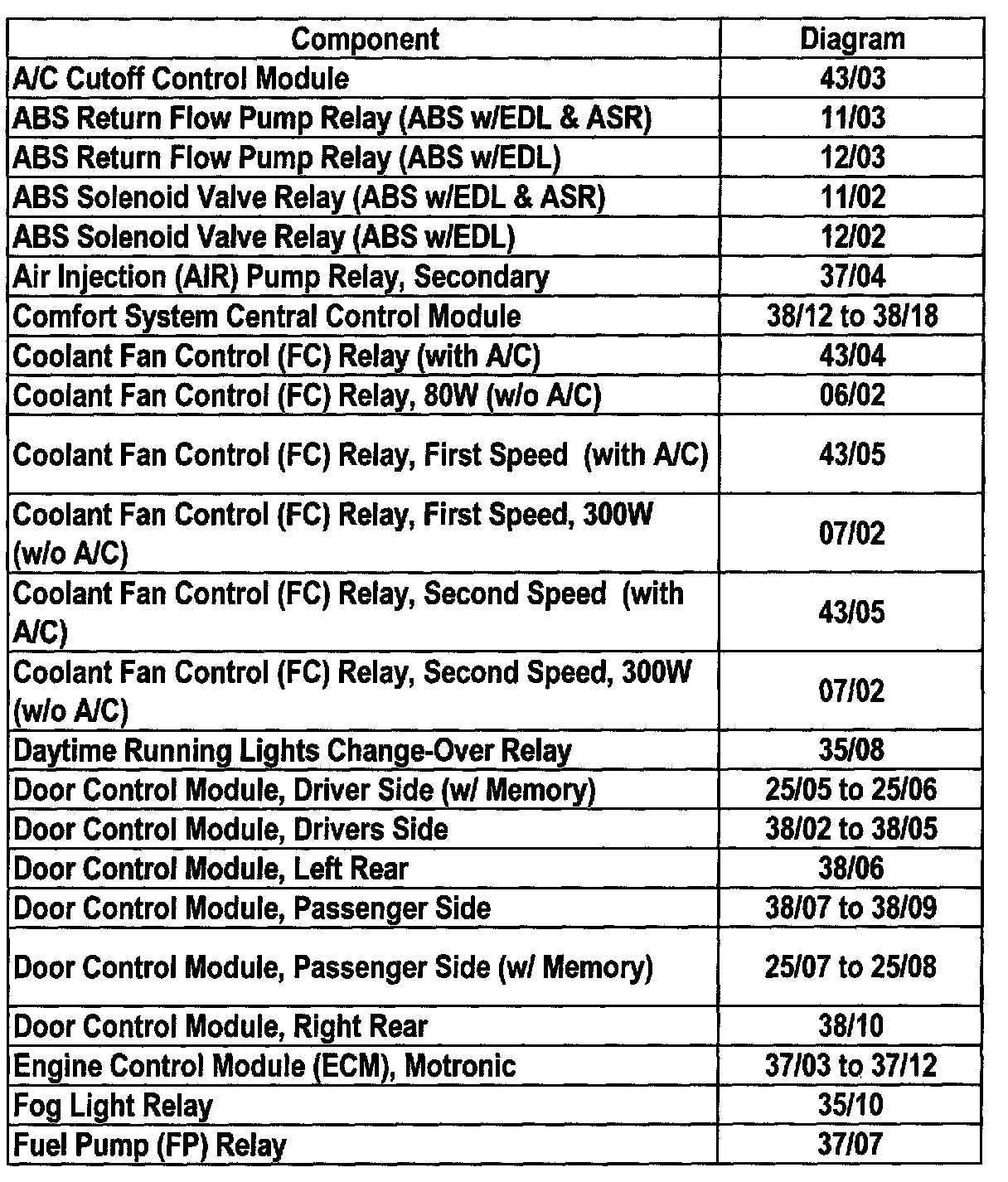 Master Diagram Index