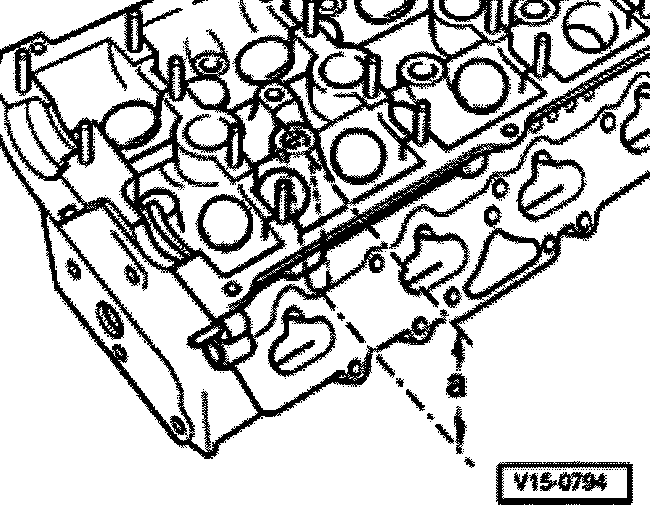 The dimension for reworking is measured through the holes for the cylinder head bolts