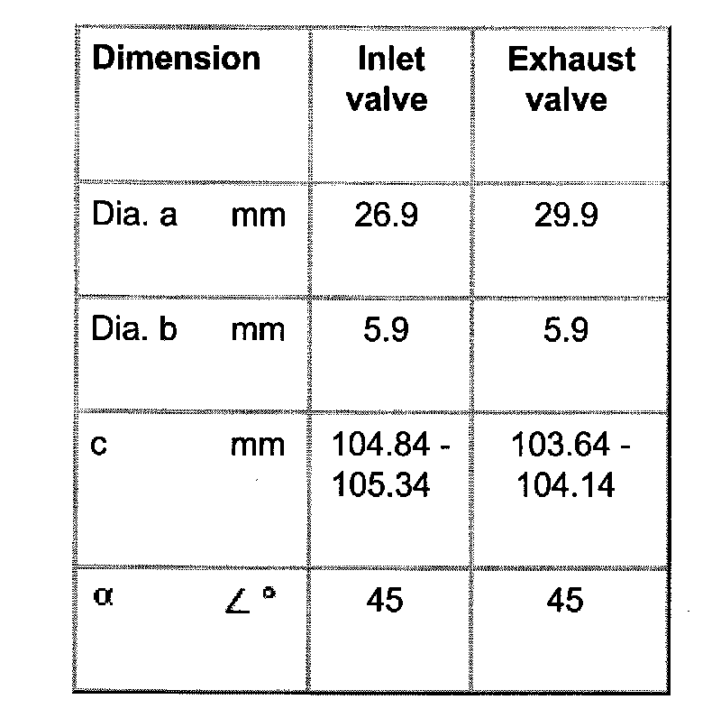 Note: Care must be taken when disposing of old sodium filled valves. They must be cut through in the center of the stem with a hacksaw. When doing this, the valves must be perfectly dry. Valves prepared in this way can then be thrown into a bucket of water a maximum of ten at a time. When doing this step back quickly because a sudden chemical reaction causes the sodium filling to burn. After this treatment, the valves can be disposed with normal metal scrap.