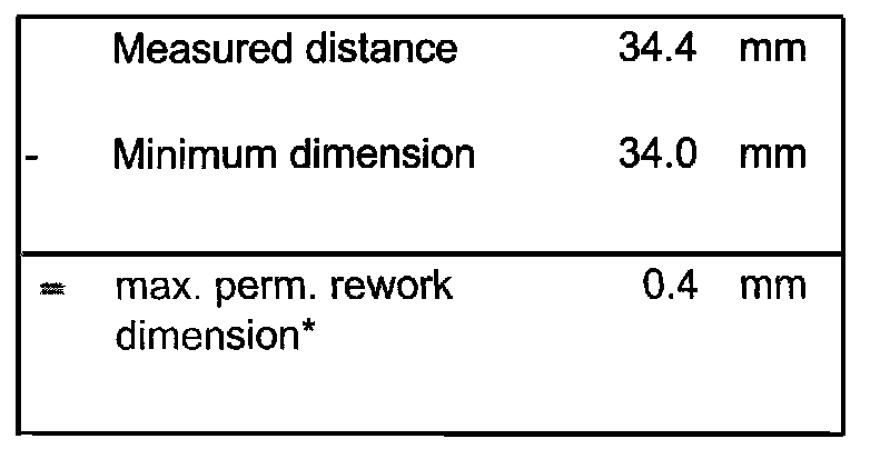- Calculate maximum permissible reworking dimension from measured distance and minimum dimension.