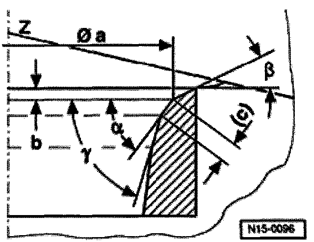 The max. permissible reworking dimension is shown on illustrations for reworking valve seats as dimension "b".