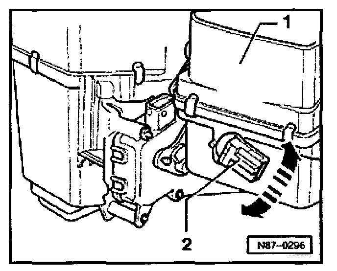 - Rotate sender -2-, 90° -arrow- and remove from housing -1-.