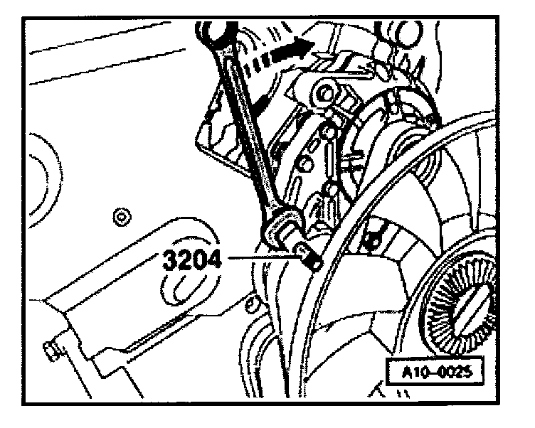 - To loosen ribbed belt turn tensioning element in direction of arrow.