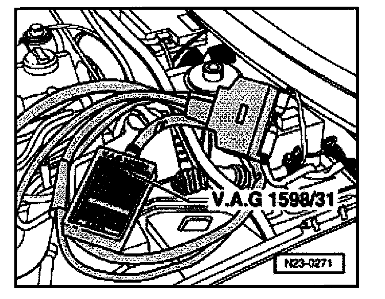 - Connect VAG 1598/31 adapter cable to control module wiring harness. Engine Control Module (ECM) is not connected.