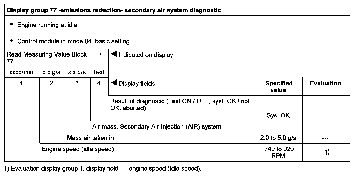 Measuring Value Blocks, Evaluating, Display Groups 70 To 79 -Emissions Reduction-
