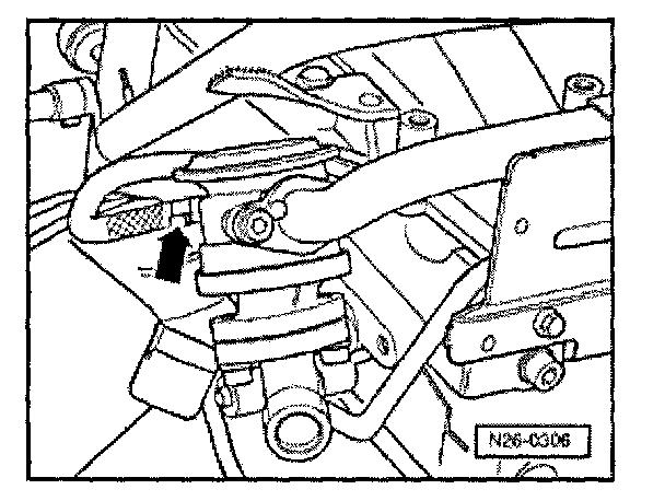 - Pull vacuum hose off combination valve (arrow) and connect hand vacuum pump V.A.G 1390.