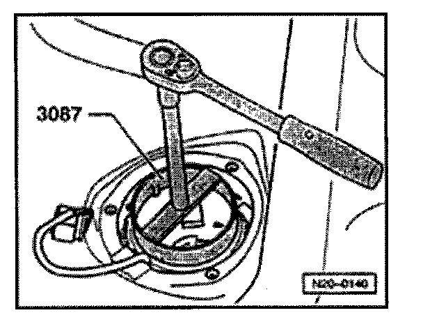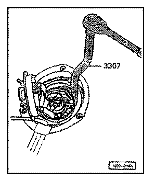 - Turn fuel delivery unit approx. 15° toward left until impact using fuel pump wrench 3307 and remove.