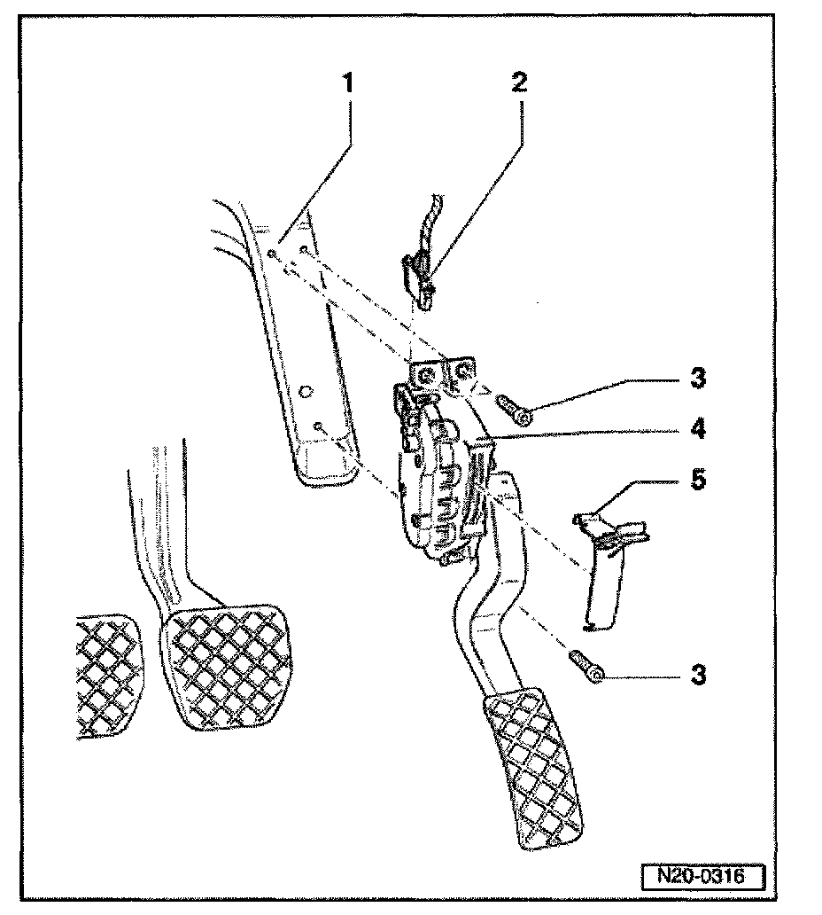 The position of the accelerator pedal is communicated to the engine control module via two sensors for accelerator pedal position (variable resistances, stored in one housing) that are connected with the accelerator pedal.