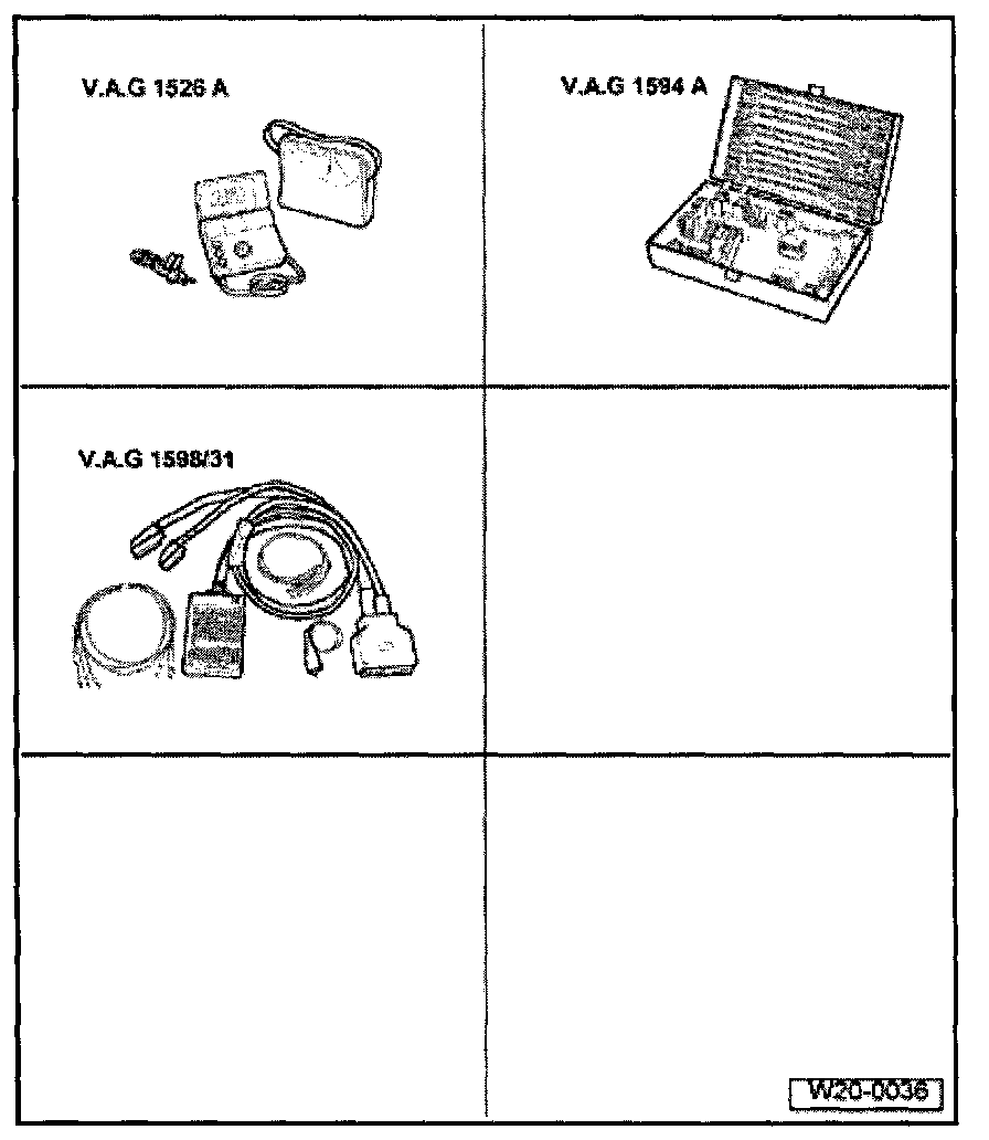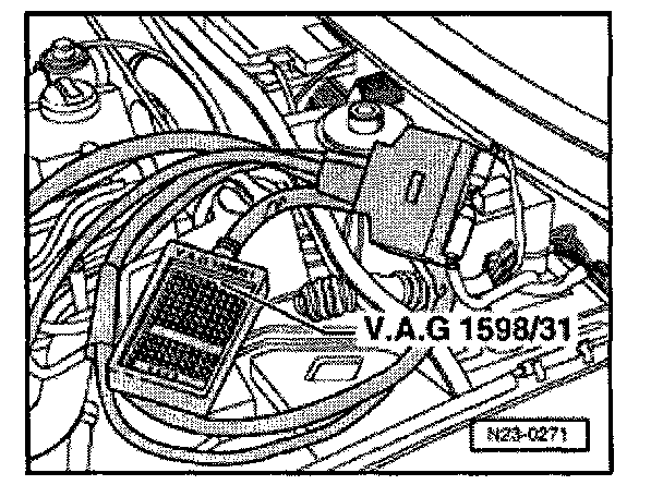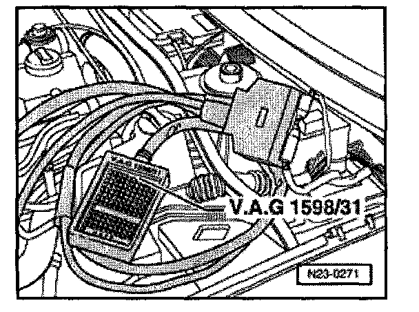 - Connect test box V.A.G 1598/31 to control module wiring harness (The engine control module remains disconnected).