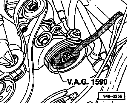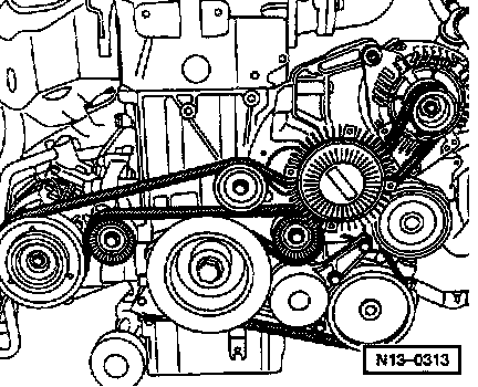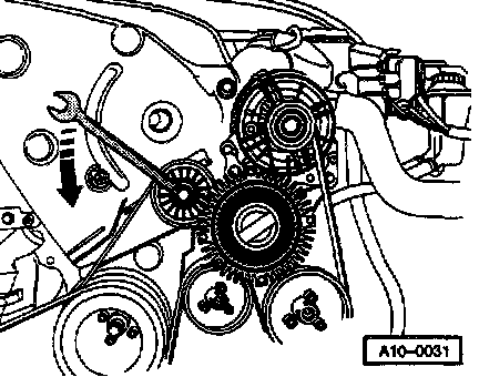 Removing ribbed V-belt on vehicles with 4-cyl. Diesel engine