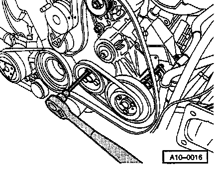 Removing ribbed V-belt on vehicles with 4-cyl. gasoline engine