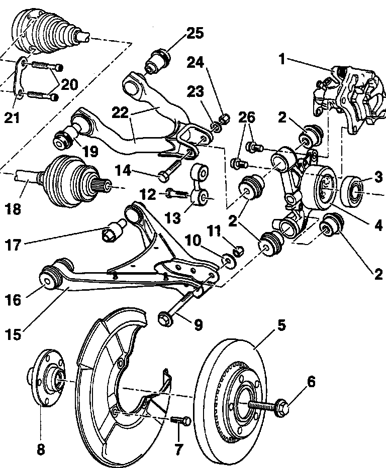 18. Front bonded rubber mounting for upper control arm