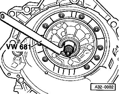 - Apply VW681 extractor lever directly behind sealing lip of seal to avoid damaging bearing ring.