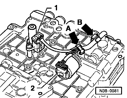 - Turn valve body over and disconnect harness connector from sensor for transmission RPM -G182- (item -1-).