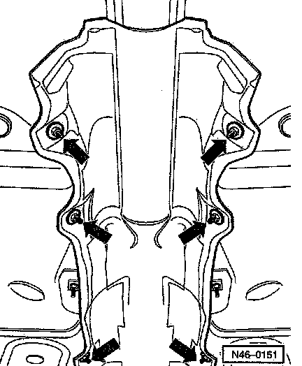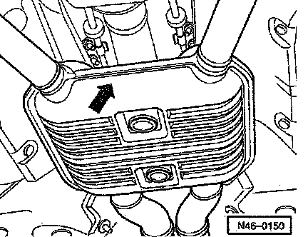 - Remove nuts (arrows) from heat shield and remove heat shield.