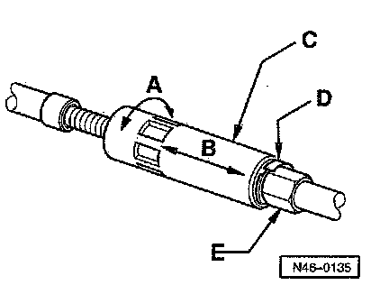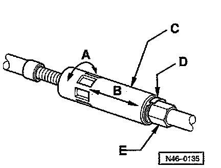 - Turn adjusting nut -C- in onto stop, counter hold with a 13 mm wrench -E-.