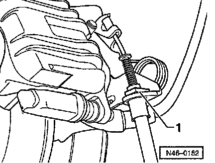 - Remove securing clip -1- and unhook parking brake cable from brake caliper.