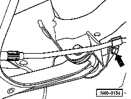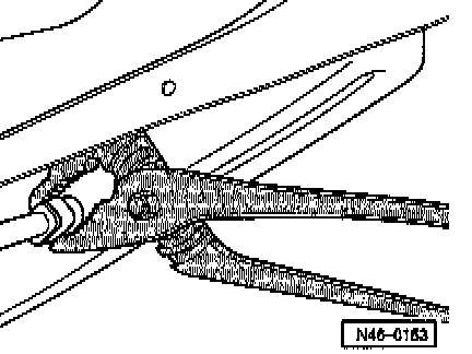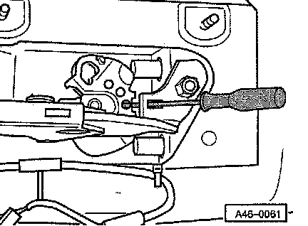 - Press parking brake cable in direction of parking brake lever using a screwdriver and push ball out of retainer.