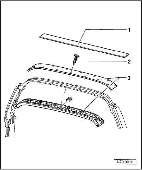 - Detach B-pillar trim in upper area, remove coat hook and guide stop to do so.