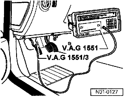 - With ignition off connect VAG 1551 using cable VAG 1551/3 to Data Link Connector (DLC).