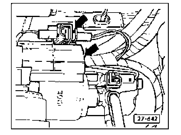 - Remove black plastic cap and connector -arrows- from solenoid.