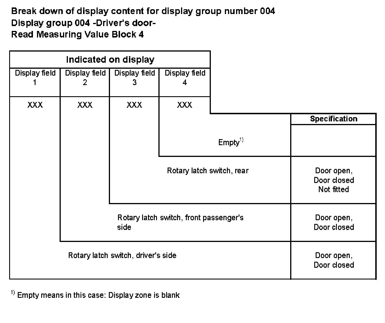 Break down of display content for display group number 004