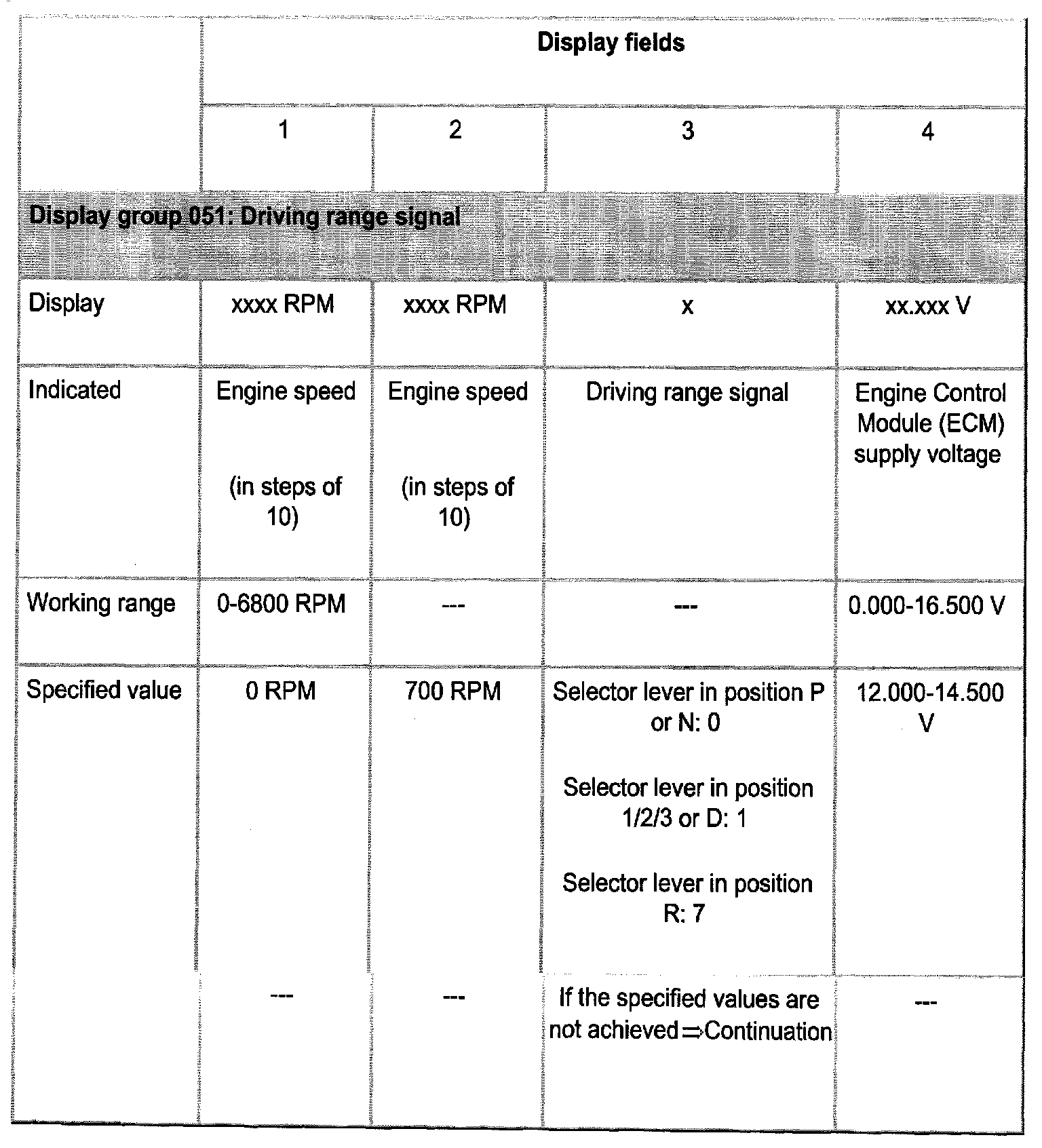 - Driving range selected (selector lever in 1/2/3/R/D) or