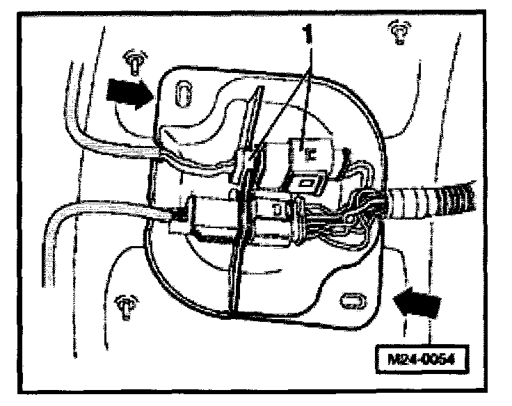 - Remove protective cover (arrows) and disconnect 4-pin harness connector -1- to Oxygen Sensor (O2S) behind Three Way Catalytic Converter (TWC) -G130-.