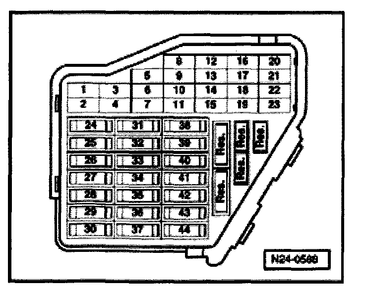 NOTE: Removing fuse 32 interrupts the voltage supply to the fuel injectors.