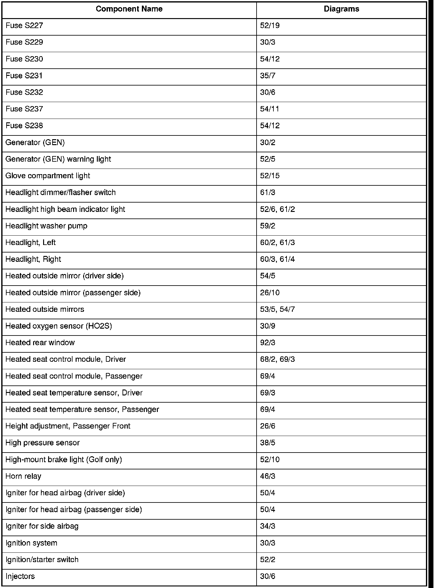Master Diagram Index