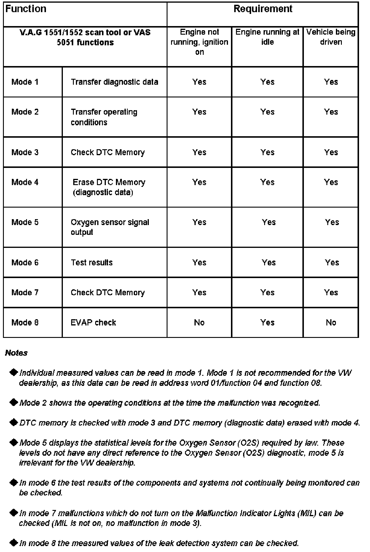 Selectable Functions (Modes) Under Address Word 33, CARB/OBD II