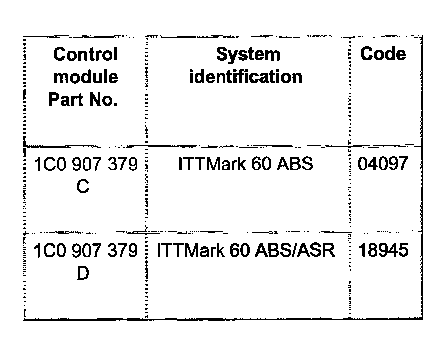 Coding Table For ABS and ABS/ASR