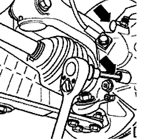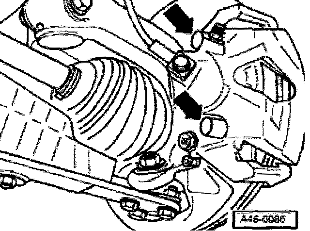 ^ Install brake caliper housing with both guide pins (arrows) to brake carrier.