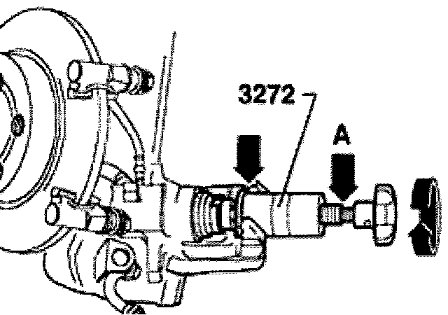 ^ Install special tool 3272 with the collar (arrow) of the tool seated on the brake caliper.