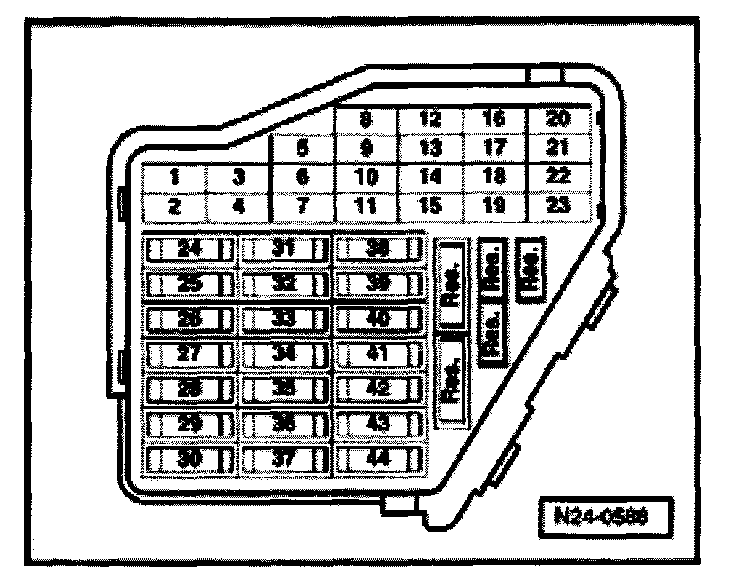 - Check wiring between 2-pin connector contact 1 and fuse holder using wiring diagram.