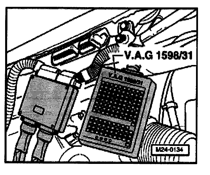 - Connect VAG1598/31 test box to control module wiring harness. Engine Control Module (ECM) is not connected.