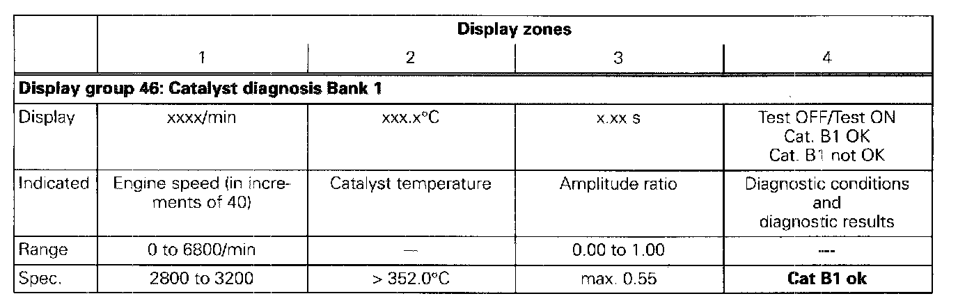 Note: Catalyst diagnostic lasts about 100 seconds. If test does not complete after 750 seconds, adjust engine speed within range of 2800 to 3200 rpm.