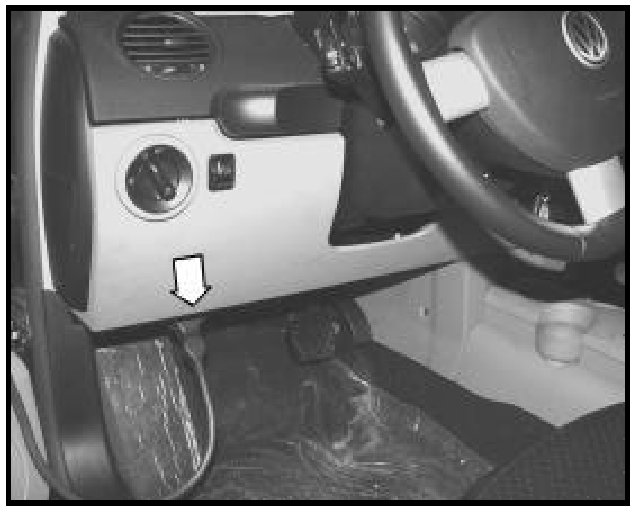 - Connect VAS 5051 / 6 diagnostic cable to data link connector located under dash on left side -arrow-