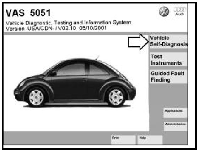- On VAS 5051 Start-up screen, press "Vehicle Self- Diagnosis" button -arrow-