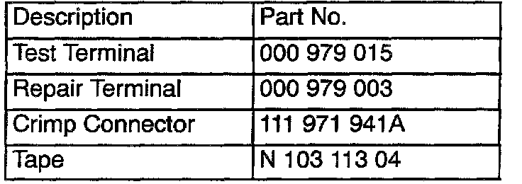 DO NOT use Part No: 000 979 003A (gold plated terminal which is included in the VAS 1978 kit) for this application. Doing so may cause corrosion due to dissimilar metals.