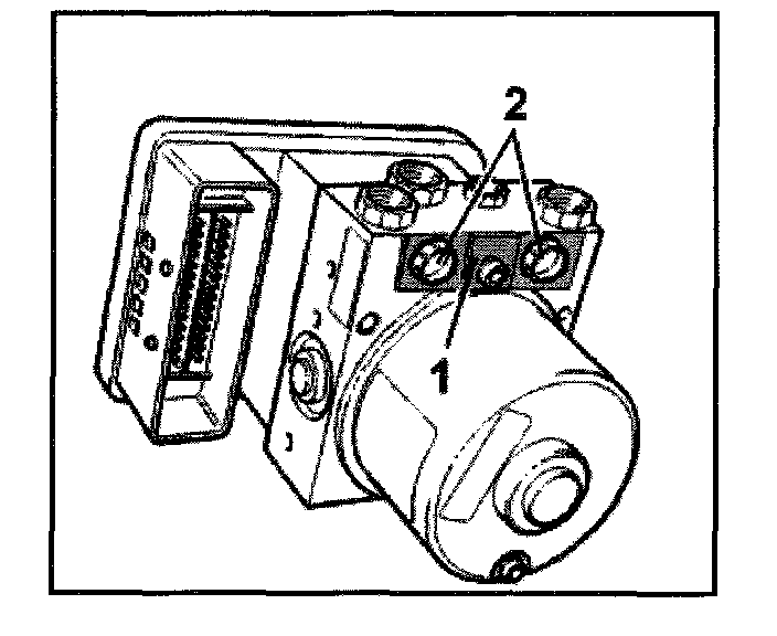 <-- Remove brake fluid lines -1- and -2- and install plugs from kit into hydraulic unit