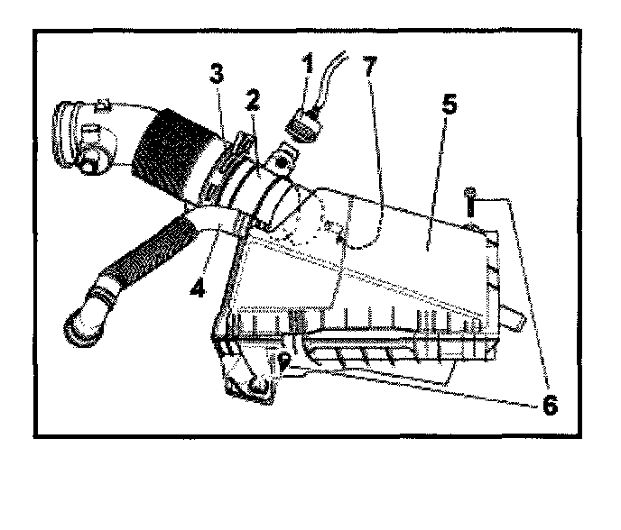 <-- Remove vacuum line -7- attached to lower corner of air box (TDI vehicles only)