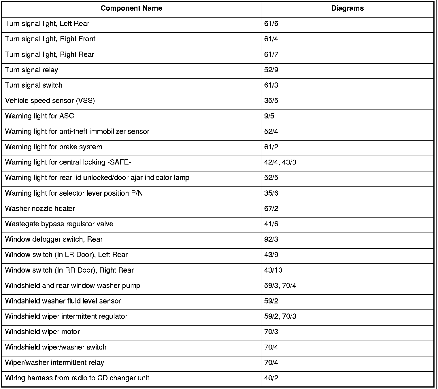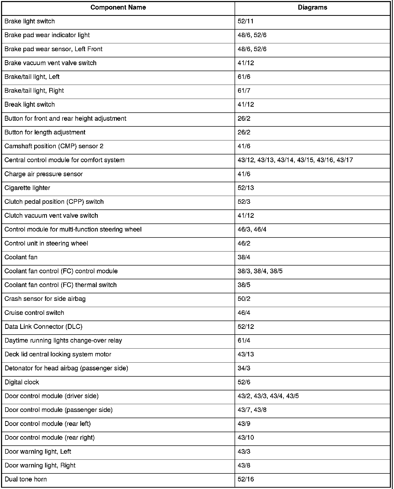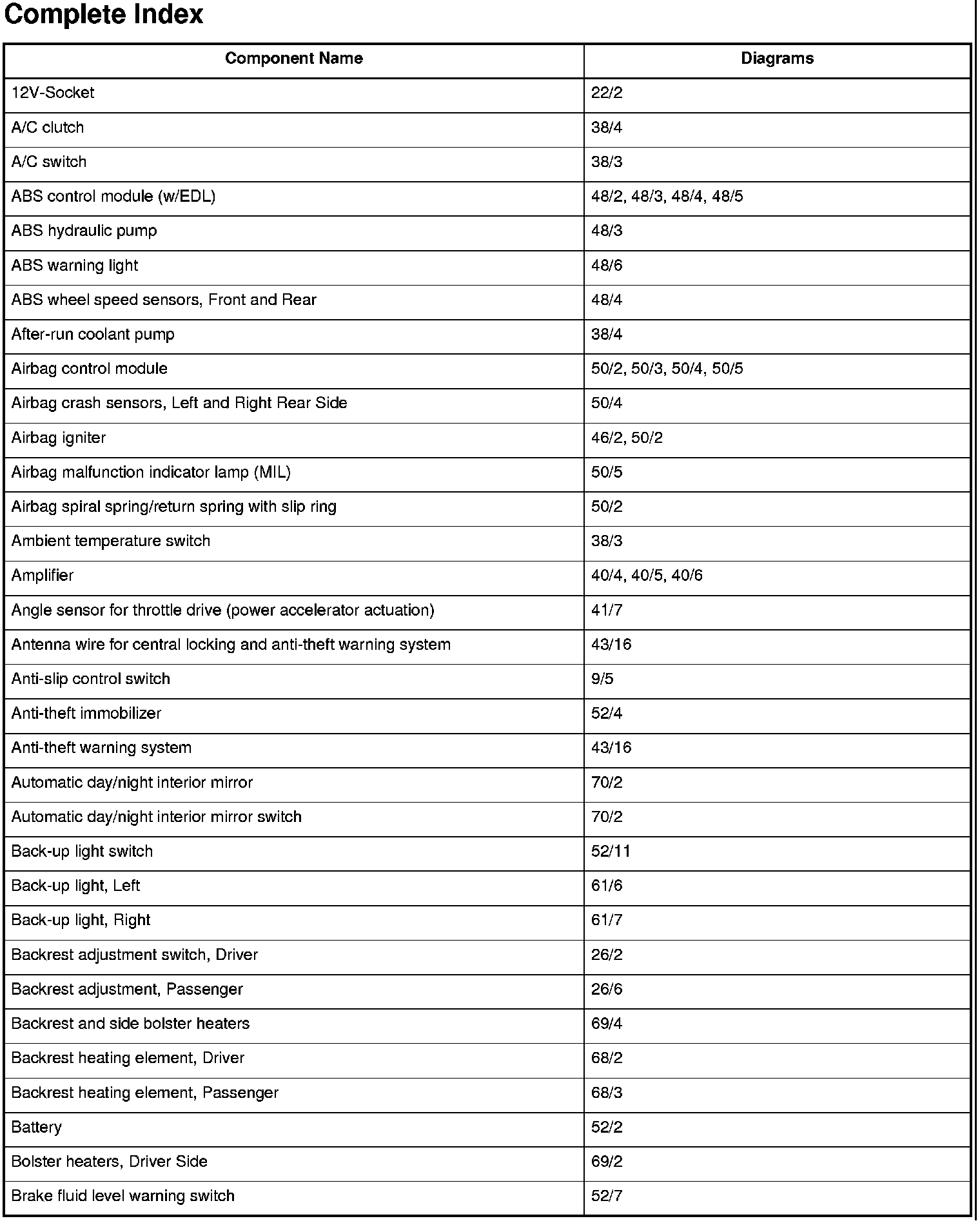 Master Diagram Index