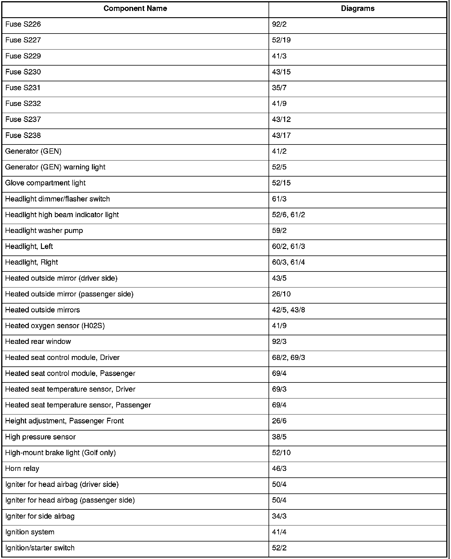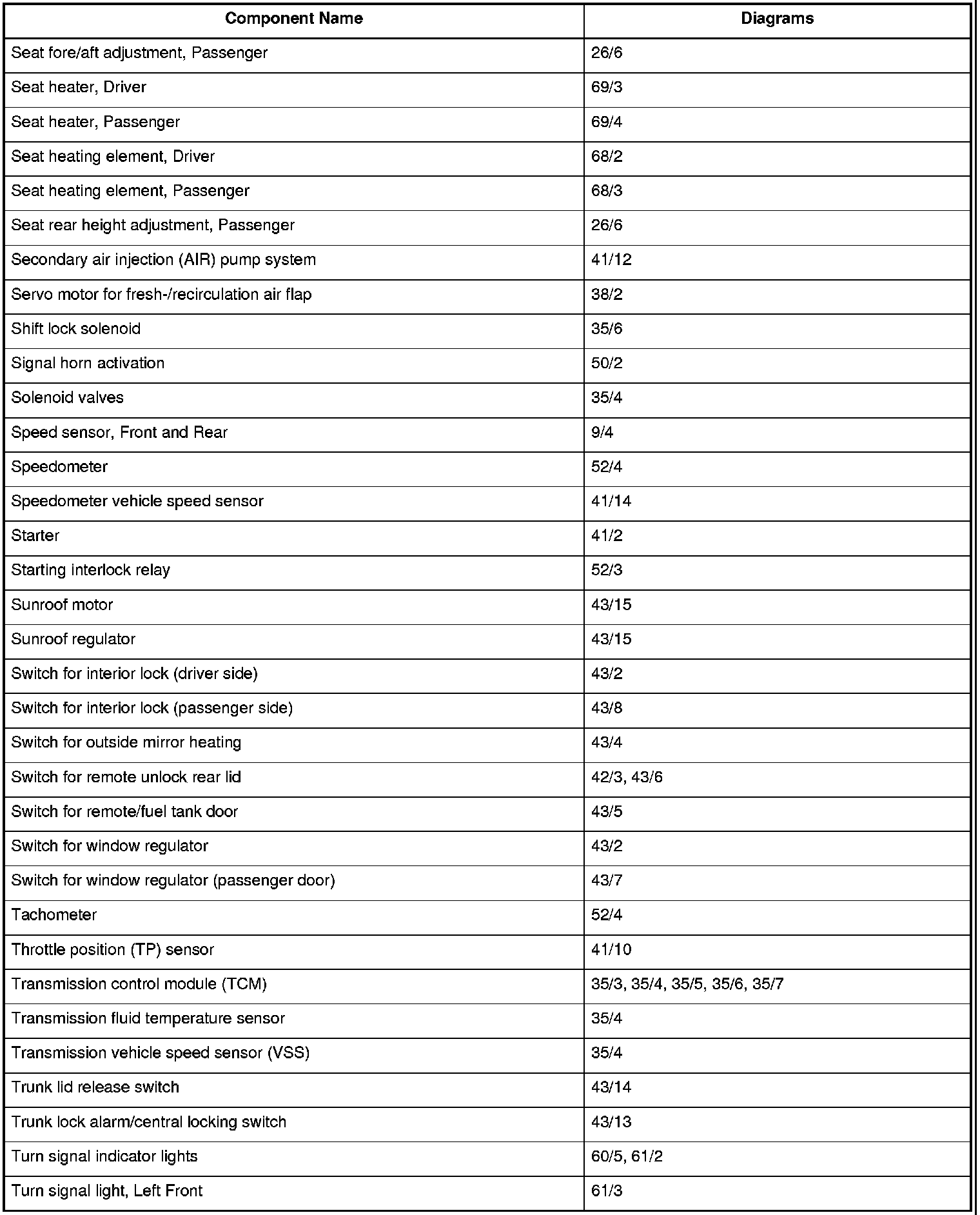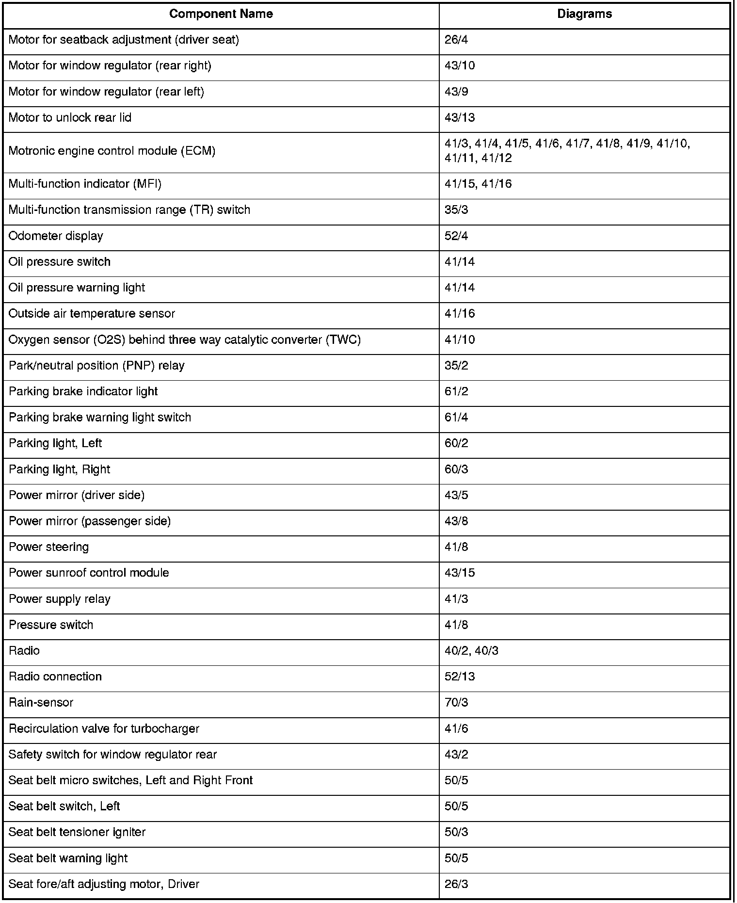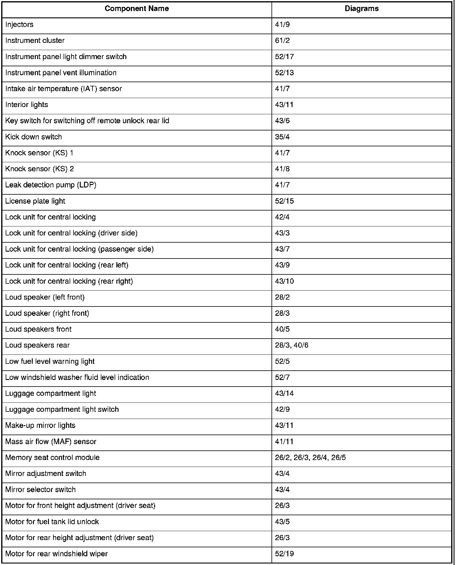 Master Diagram Index