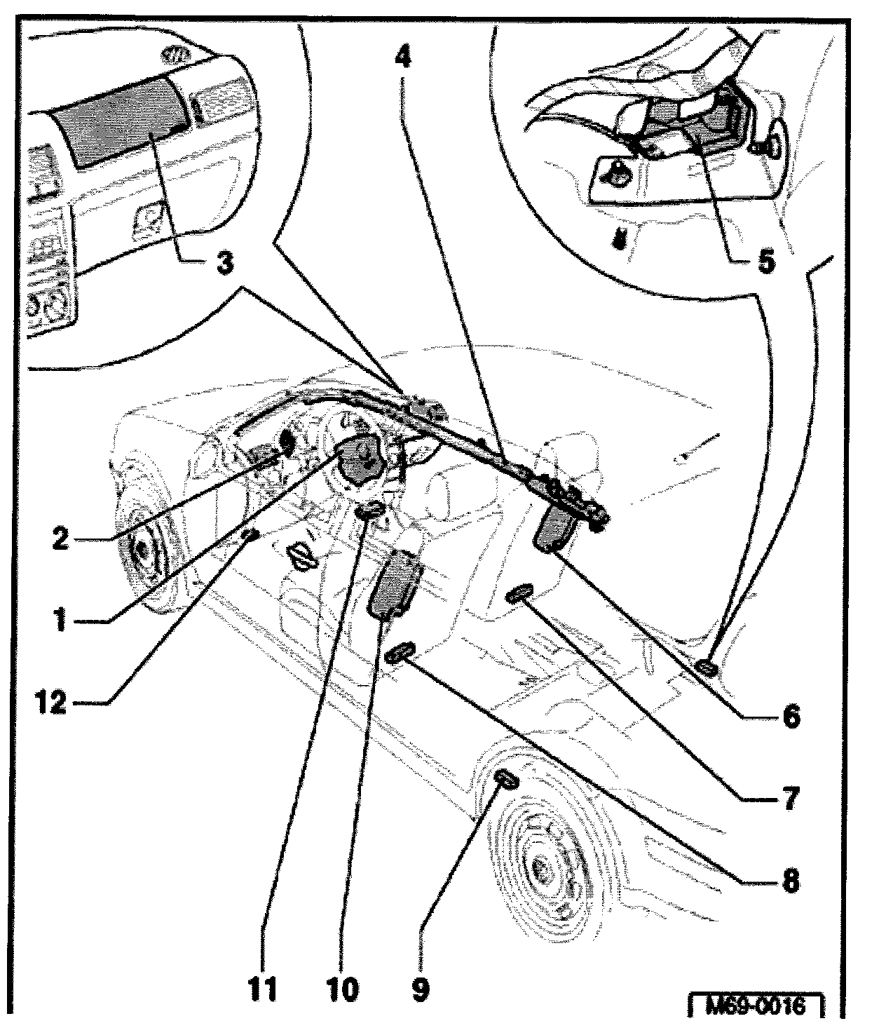 1 - Airbag unit driver's side (with Airbag igniter, driver's side -N95-)