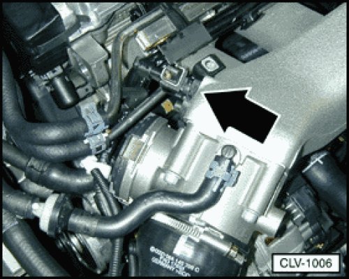in intake manifold, right side, near throttle valve