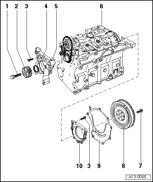 Removing and installing, refer to Crankshaft Seal, Ribbed Belt Side, Replacing Service and Repair