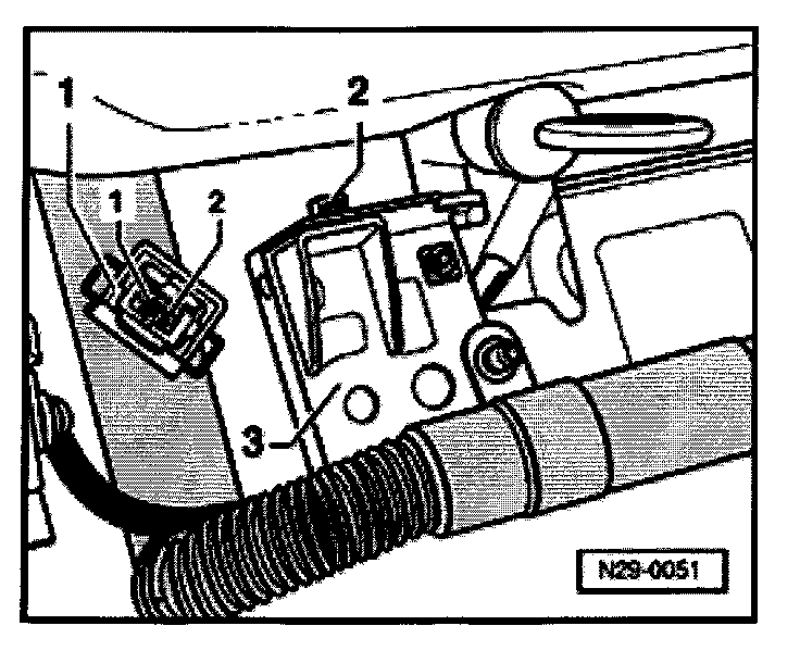 - Connect the VAG1551 scan tool (VAG1552). Then switch ignition on and select engine control module with the "Address word" 01.(Connecting scan tool and selecting engine control module.) [1][2][3]Connecting VAG 1551 Scan Tool