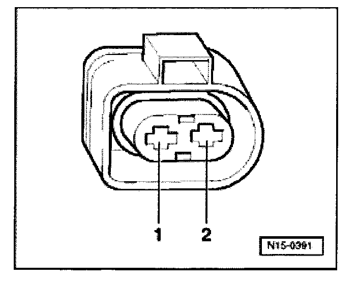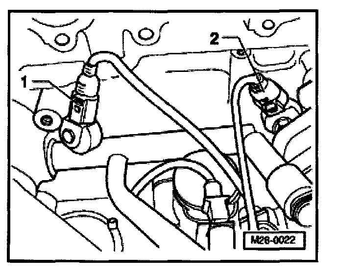 - Disconnect 2-pin harness connector to knock Sensor (KS) 1 -G61- (item no.1) and/or the 2-pin harness connector to knock Sensor (KS) 2 -G66- (item no.2).