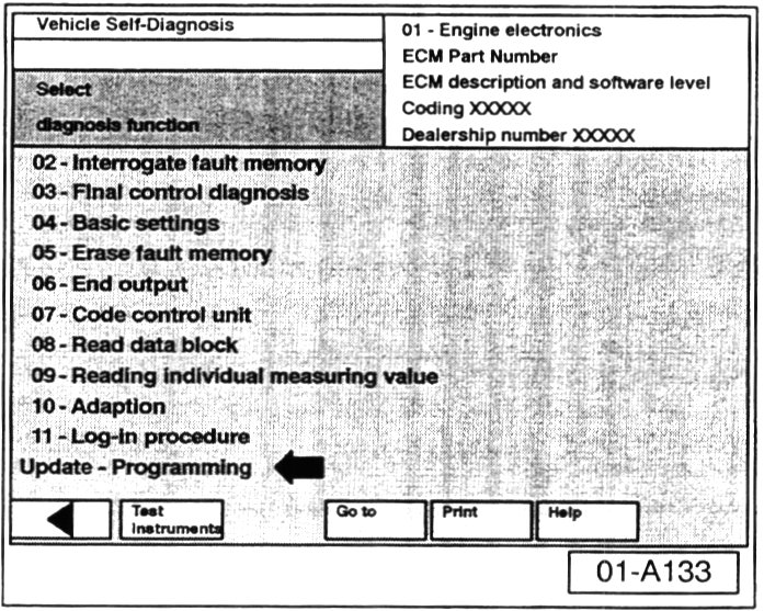 - Attach print to vehicle Repair Order. Once "Update - Programming" (flashing) is complete, the control module must be re-initialized.